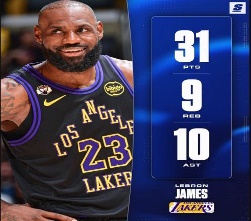 湖人大胜老鹰结束了漫长的三连胜,此役湖人一度领先老鹰32分,第三节东契奇开始玩耍各种失误让分差被缩小到13分,末节勒布朗连拿12分直接终结悬念,这个夜晚的老头又成为了那个超级英雄,全场比赛31分9篮板10助攻1盖帽,提前打卡下班未能拿到30+三双。