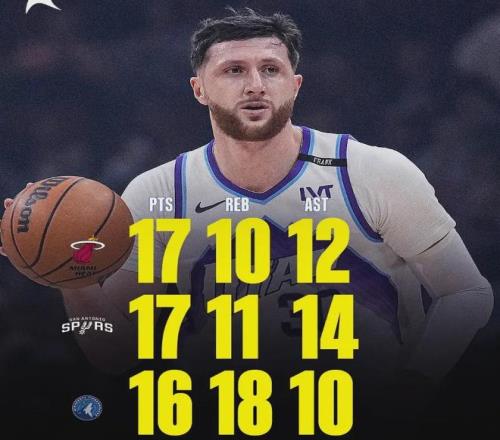 此前一月底更是连续三场打出三双,成为历史第四位连续三场三双的中锋,和约基奇、张伯伦、小萨等人站到了一起。