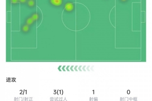 萨卡本场数据:2次射门打进1球,14次对抗4次成功,获评7分