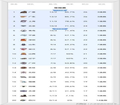 ②、广厦3连胜重登排名第一宝座,广东以相同的战绩位居次席;