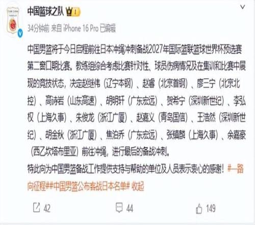 世预赛中国男篮将战日本、中国台北,新阵容可否扭转颓势
