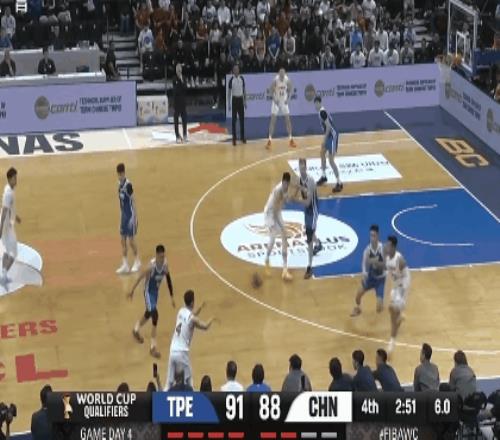 半场结束前最后一攻,焦泊乔抢到后场篮板,但他太急于快攻,传球失误被中国台北男篮断下,刘铮三分线外两步接球转身跳投一气呵成,中国台北男篮靠着这个三分51比50反超中国男篮结束半场。