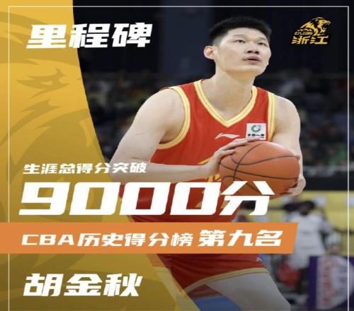 里程碑!胡金秋生涯总得分突破9000,升至CBA历史得分榜第9位