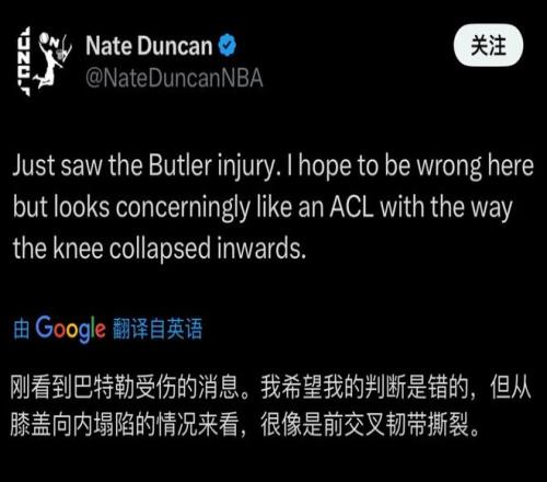 最后,祝福巴特勒没有大碍,此役意外遭遇右膝受伤......他曾于2018年右膝半月板撕裂,以及2024年右膝内侧副韧带扭伤。