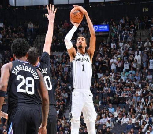 NBA常规赛,马刺坐镇主场迎击爵士。本场比赛之前,马刺23胜7负高居西部第2,且近期轰出一波8连胜,包括3次击败联盟第一的雷霆,正在势头之上。从数据上看,他们的攻防效率都在联盟前5,文班亚马本赛季继续进化,场均能拿23分12篮板的大号两双,福克斯作为球队核心后卫,状态也非常不错,包括卡斯尔,哈珀等年轻球员,成长都非常迅速,本赛季马刺肯定是有争冠机会的。另一边爵士,本场比赛之前,11胜19负排名西部第11,虽然作为西部鱼腩队之一,但爵士这个战绩,依然具备冲击季后赛的机会。