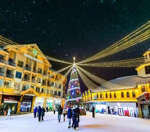 (长白山万达国际度假区商业街夜景)
