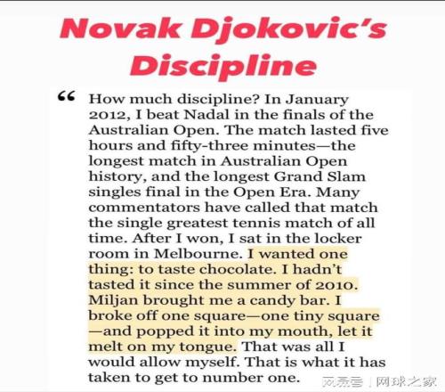 德约的强大,在于他建立了一套以成为最佳为绝对准则的内心秩序。在这套秩序里,一切选择都有了明确的标尺:这有助于我的长期目标吗?当赢得大满贯、保持世界第一成为融入血液的使命时,无数个微小的不:对某些食物的拒绝、对额外休息的坚持、对训练一丝不苟的执行,就不再是痛苦的剥夺,而变成了自然而然的、甚至是充满力量的行动。他不是在对抗欲望,而是在执行一个更高优先级的指令。