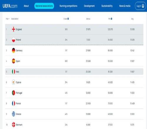 根据规则,当赛季欧战系数平均积分排名前二的两个联赛下赛季都将得到额外的一个欧冠参赛名额。