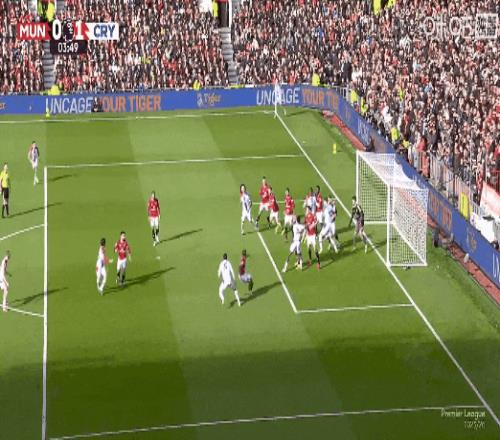 开场闪击!比赛第3分钟,拉克鲁瓦稍远距离头球顶进死角,水晶宫1比0曼联!