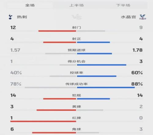 数据背后,是热刺全方位的落后与无力。全场40%的控球率被水晶宫死死压制,传球成功率比对手低10个百分点,进球机会1-3落后,即便射门数略占优势,也难以转化为有效威胁。更扎心的是,这场失利绝非偶然:近14个英超主场仅胜1场,2026年开年以来11轮联赛一胜难求(4平7负),创下队史英超最长不胜纪录,上一次遭遇如此尴尬局面,还要追溯到1975年;自上赛季以来,热刺在英超输掉36场比赛,仅少于狼队,主场输球19场,同期英超第二多。