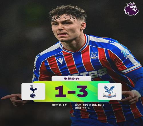 这场溃败,是热刺近期颓势的集中爆发,更是球队混乱的真实写照。比赛的转折点出现在第38分钟,主力中卫范德芬作为最后一人拉倒单刀的萨尔,吃到红点套餐,萨尔亲自主罚命中扳平比分。在此之前,索兰克的进球曾让热刺短暂看到希望,但红牌之后,球队彻底崩盘:上半场补时阶段,拉尔森穿裆破门反超,萨尔再下一城完成双响,短短13分钟,热刺从1-0领先沦为1-3落后,主场球迷纷纷提前退场,用沉默控诉着球队的狼狈。