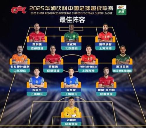 2025赛季中超最佳阵容:法比奥、瓦科领衔,蒋圣龙、朱辰杰入选
