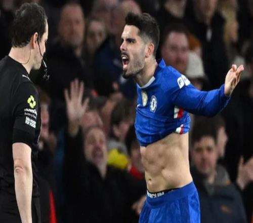 切尔西本赛季英超已领到7张红牌,创队史单赛季新高