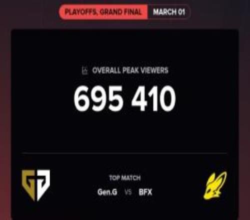 电竞体育03月02报道 数据网站公布了昨日2026LCK Cup总决赛GEN vs BFX的直播热...