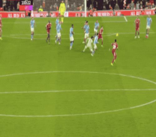 第100分钟,利物浦进行最后一搏,本方半场空空如也,谢尔基中圈传球,索博斯洛伊拉拽哈兰德,哈兰德也还以颜色,两人都没有碰到皮球,皮球缓缓滚进球门。