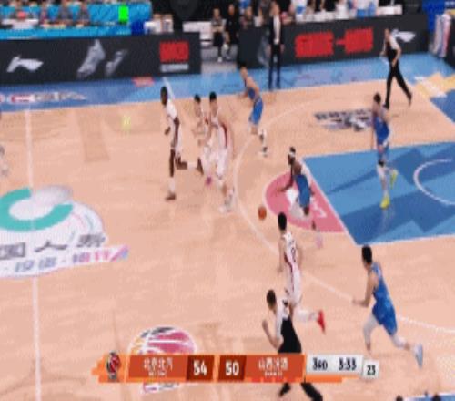 杰曼手感火热打进潇洒拉杆上篮后再飚进后撤步三分,在杰曼大神带领下,北京一波2分半钟9-0重新领先52-47;