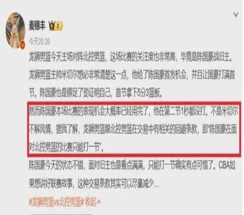 当然这样的情况不只是CBA有,NBA也有,就像詹姆斯刚从热火队回到骑士队的时候,他也是多次缺席骑士队对阵热火队的比赛,可能是不愿意在场上面对好兄弟韦德,更多的原因应该是球队之间的回避条款。