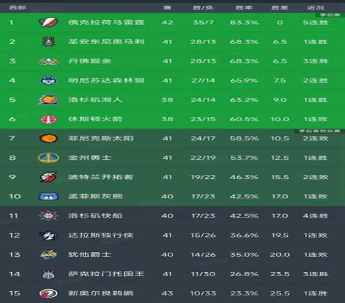 北京时间1月16日,今日的NBA常规赛结束了所有比赛,我们看看西部球队的战况,和最新积分榜变动,雷霆掀翻火箭豪取5连胜,马刺大胜雄鹿上升第二,火箭和湖人过去5战都是输掉了4场,勇士和开拓者过关守住第8和第9的位置!