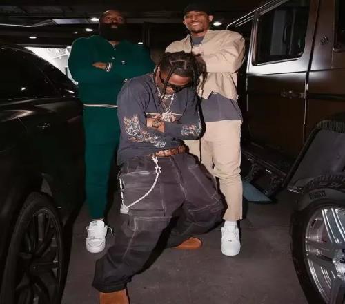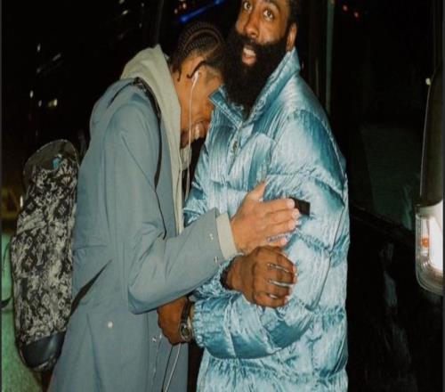 TravisScott现场观战哈登骑士首秀,两人赛后激情相拥