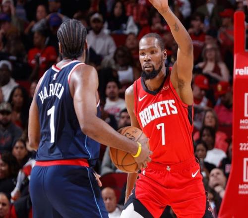 本赛季NBA常规赛还剩最后四分之一赛程,说来有趣,打到当下这个阶段,西部第二档梯队,也就是3-6名的球队,胜率都在6成上下。火箭打得这么差,还能排名西部前三,只能说全靠同行衬托。掘金剩余赛程难度联盟第一,森林狼和湖人也不稳定,这么看,火箭守住西部第三的位置并不难。但是,缺少范弗里特+亚当斯的火箭,季后赛能到什么高度?有一组数据,在亚当斯没赛季报销前,火箭的篮板率是历史第一级别;但是亚当斯重伤过后,火箭篮板率已经掉到联盟第七,没优势了。这里面,最憋屈的是杜兰特。