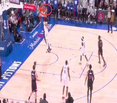 第二次是错判,发生在距离第四节结束还有48.4秒。艾伦在封盖杜伦时,手碰到的是球,这是一次没有犯规的封盖,但裁判吹了艾伦防守犯规,给了杜伦两次罚球机会。这是一次错误的判罚,依然是活塞获利,骑士吃亏。