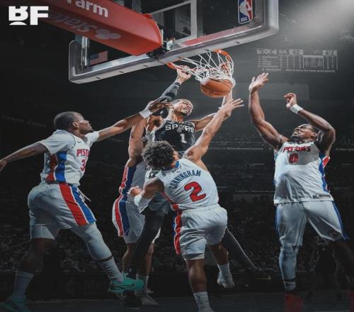状元大战状元,本赛季马刺两战活塞,文班亚马一共送给坎宁安5记大帽。今天文班亚马再次打出炸裂数据:出战38分50秒,投篮24中12,三分10中4,罚球11中10,狂轰38分16篮板3助攻5盖帽,正负值+20并列全场最高。