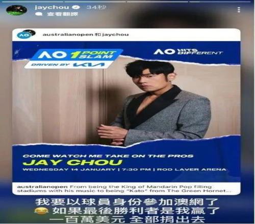 炸!周杰伦今晚打进澳网胜负已分!带着捐出100万澳币的豪气登场