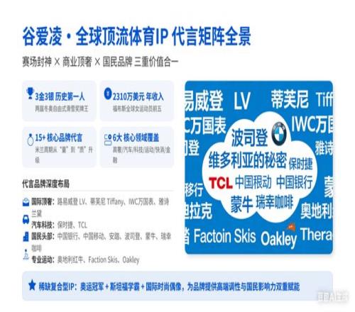 谷爱凌作为超人气运动员,商业价值也是非常值得一提的。