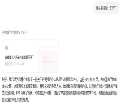 我们将基础操作交给 AI,打开豆包,点击 PPT 生成,输入主题,不到五分钟,豆包就把 PPT 做出来了。
