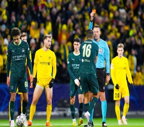 颜面尽失的曼城,在第60分钟靠着谢尔基大禁区外的一脚贴地斩,打进了挽回颜面的一球,将比分追至1-2,就在曼城球迷看到一丝触底反弹的曙光时,金球先生罗德里1分钟之内连吃两张黄牌被罚下,让蓝月军团彻底失去了追平比分的希望。