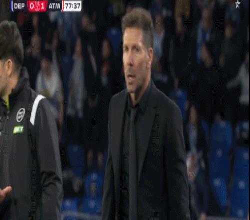 第77分钟,球碰到拉科球员腿上后出了边线,裁判判给拉科球权,西蒙尼不满