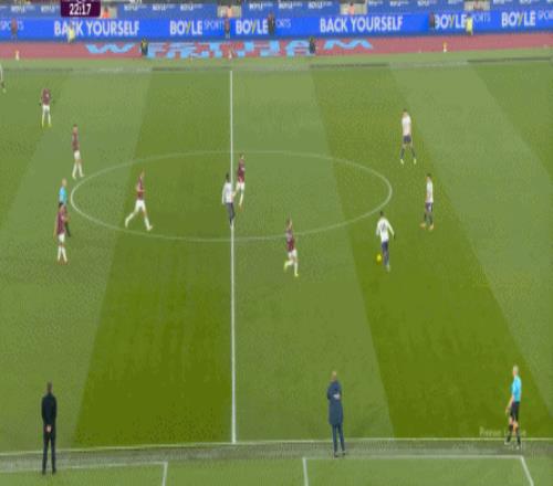 一次抓曼联封闭空间不力,被西汉姆联转移到弱侧形成进攻: