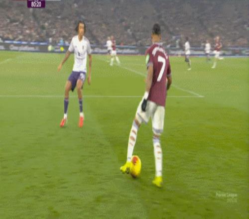 到了这个时候,此前在一周一赛时被掩盖的问题就会浮出水面,比如这次推进,好不容易打出了速度,但到了弱侧,你也不知道是达洛特传大了,还是阿玛德-迪亚洛追不上了,反正一次很好的推进变成了西汉姆联的门球:
