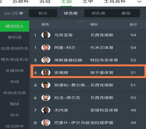 第一个,上赛季土超联赛,安佩姆是整个土超成功过人榜第4名,整个赛季完成51次成功过人,和他并列的是1800万欧的葡萄牙中场热德松-费尔南德斯,他曾在英超热刺踢过球的,你就知道安佩姆的过人能力了。虽然安佩姆只有150万欧,但是他的价值不输1800万欧英超级别的球星。