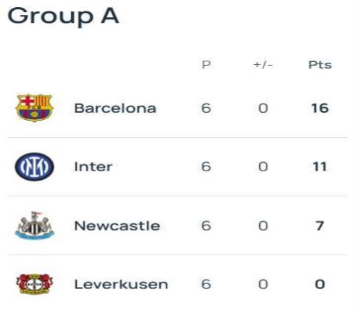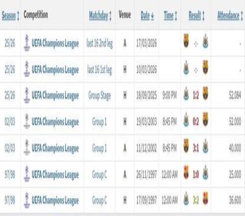 02-03双方再次在小组赛相遇,巴萨主场3-1、客场2-0双杀了纽卡,巴萨最终小组头名出线,纽卡则小组第三出局,不过巴萨在16强中两回合2-3遭到尤文淘汰。