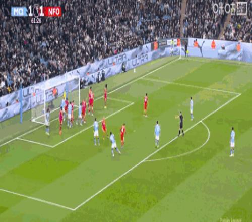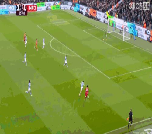 塞门约迎球凌空端射,动作一气呵成。皮球如出膛炮弹,直窜网窝!1-0,曼城取得领先。