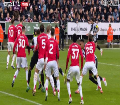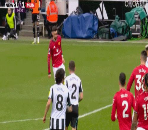 第45+9分钟,B费定位球助攻,卡塞米罗抢点头槌破门,曼联1-1!